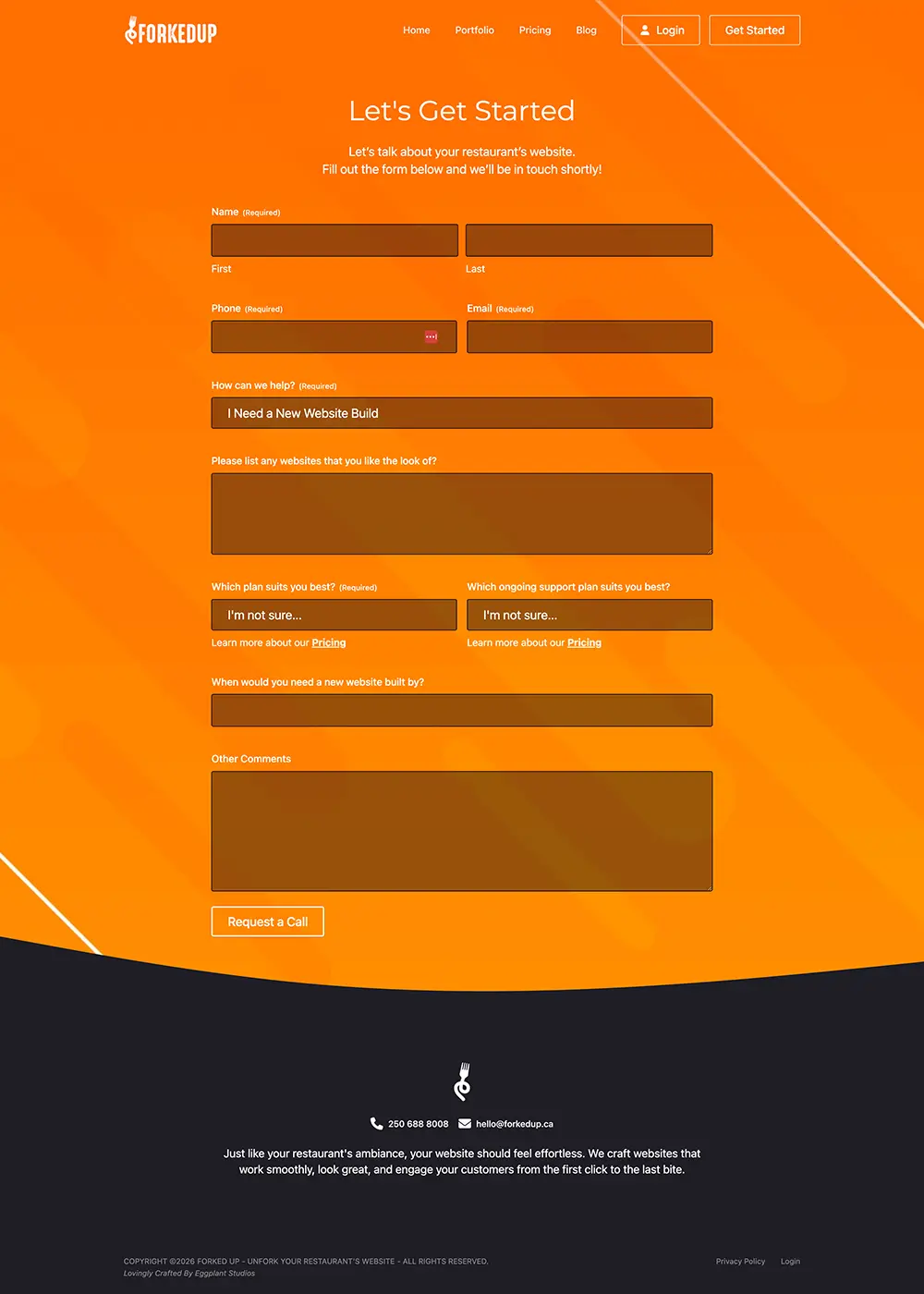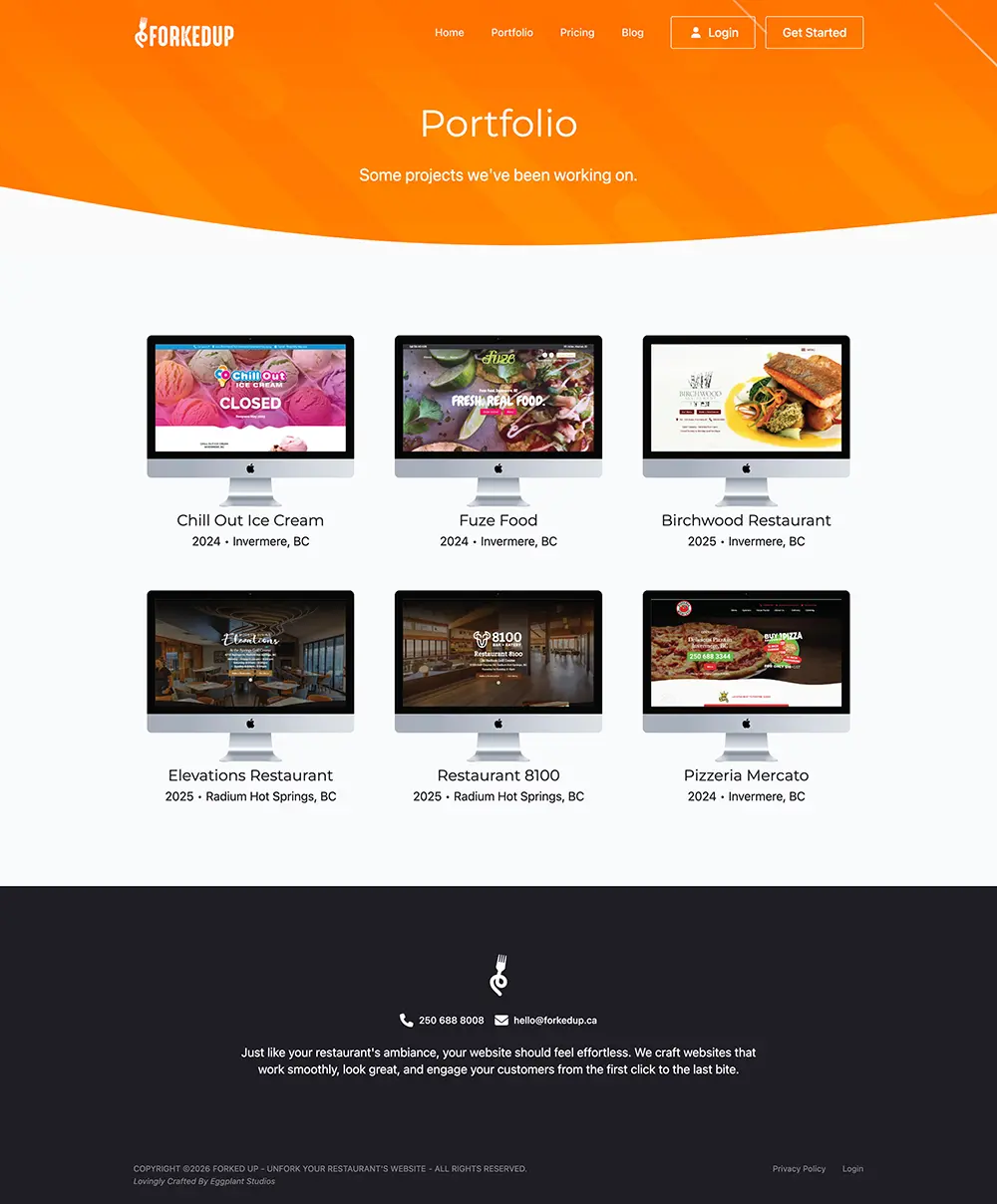 ForkedUp is a specialized service offered by Eggplant Studios that focuses exclusively on unique and custom restaurant websites focused on your food, space, and personality.
