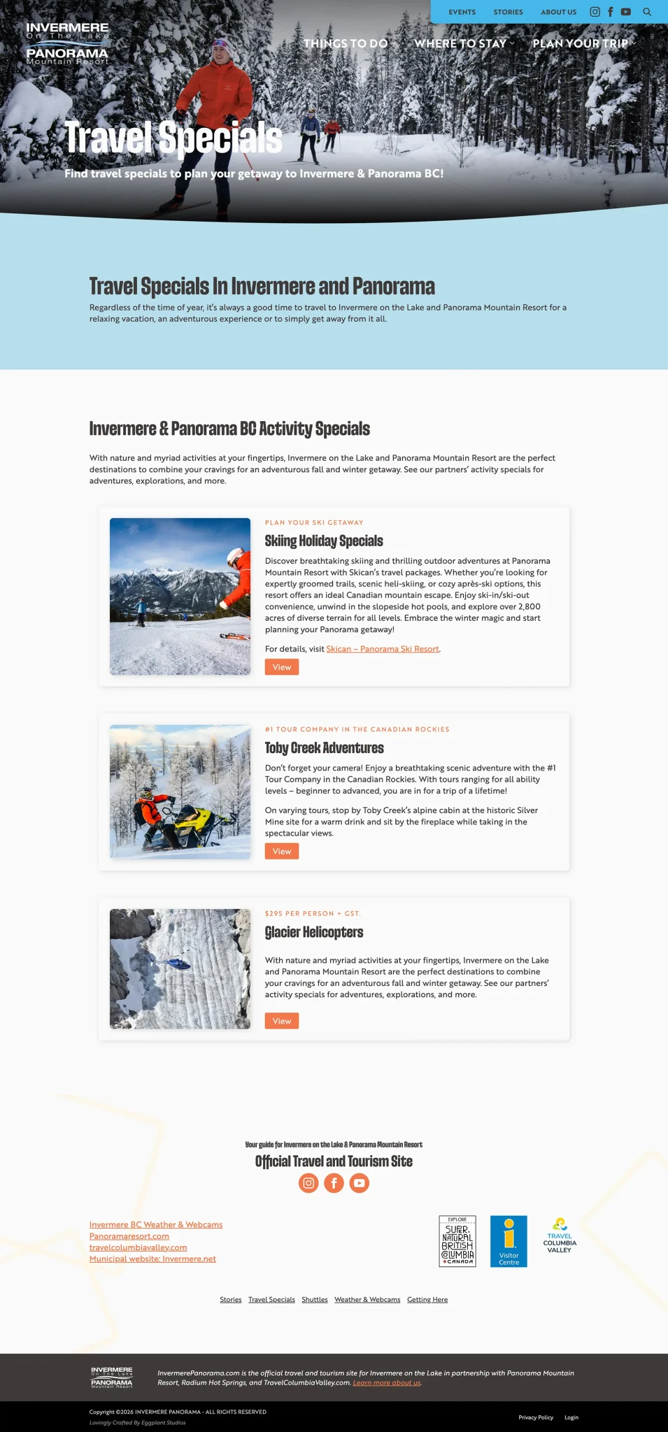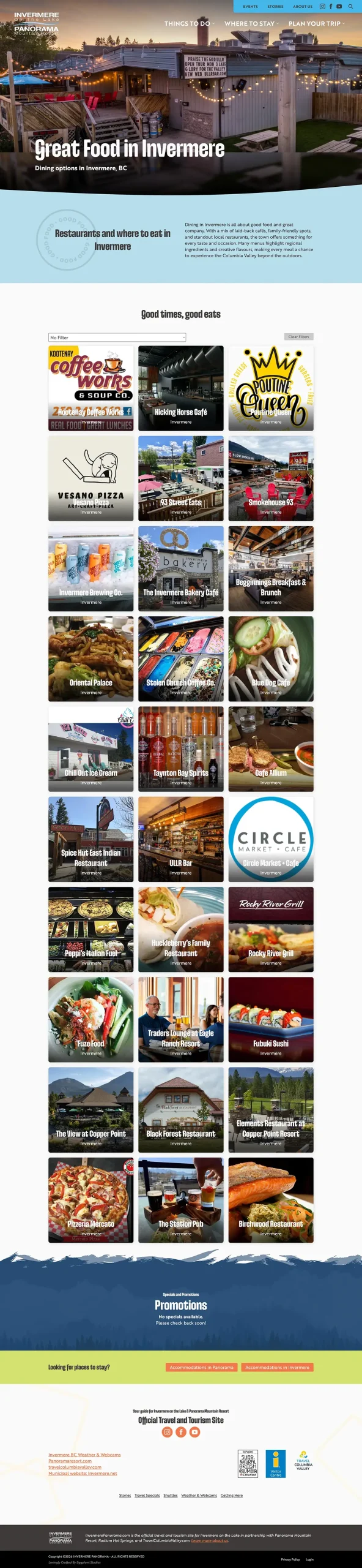 Invermere Panorama needed a website redesign to better allow them to complete their mission of promoting tourism in the Invermere to Panorama corridor. They required the ability to easily add accommodator, restaurant and activity provider listings, and events to the website.