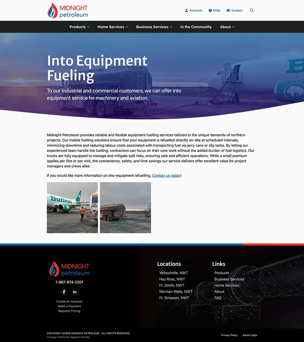 Midnight Petroleum provides fuel and lubricants to homes and businesses in the remote Northwest Territories. Midnight Petroleum has been serving the north for 35+ years.