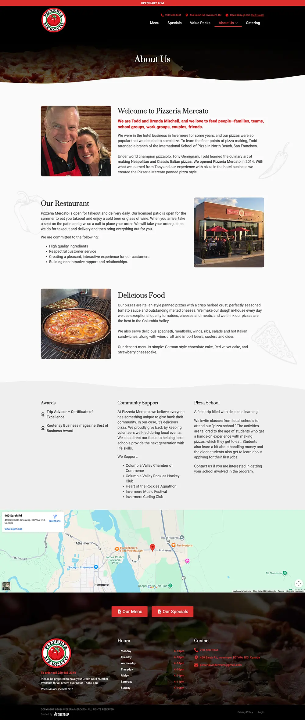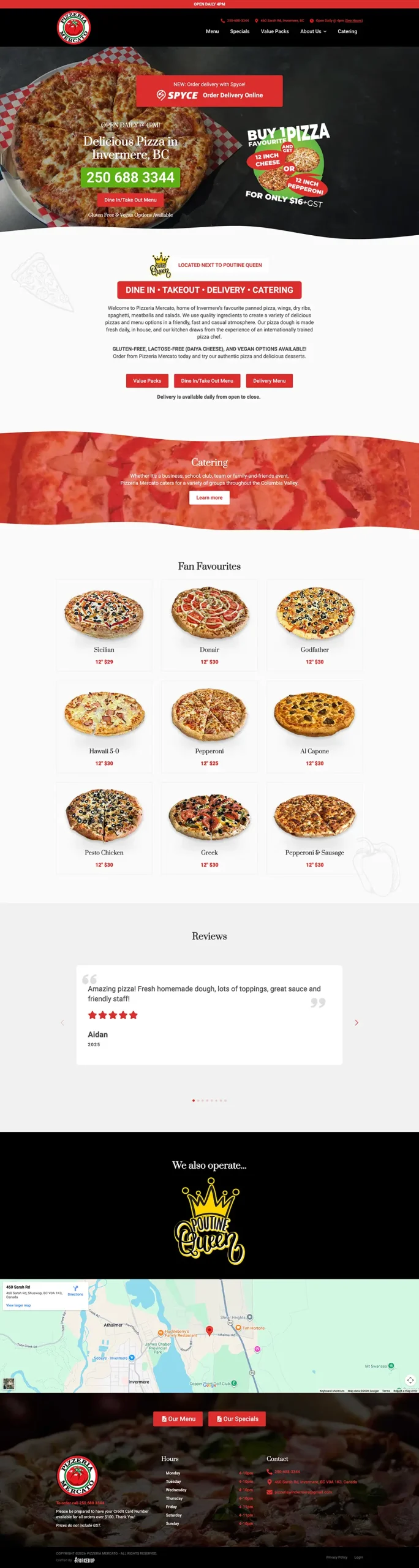 Pizzeria Mercato needed a landing page to share their specials, link to their online ordering platform, and showcase their great pies.