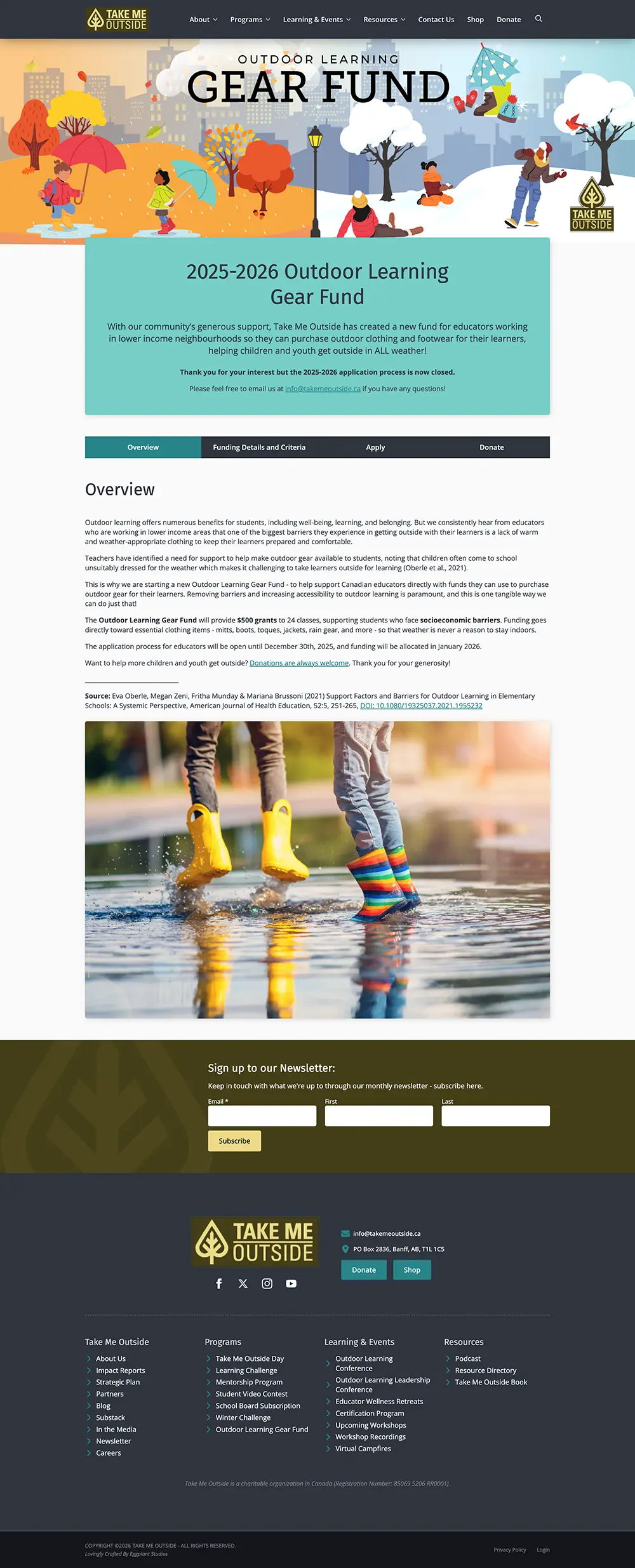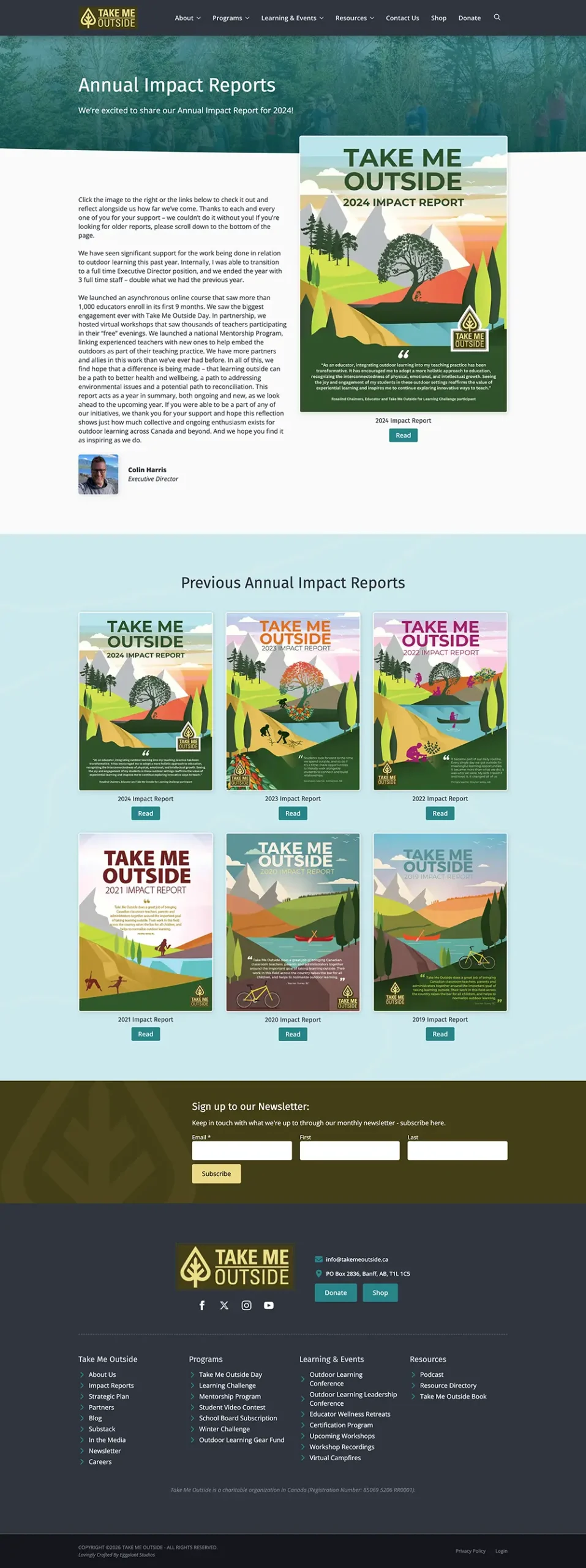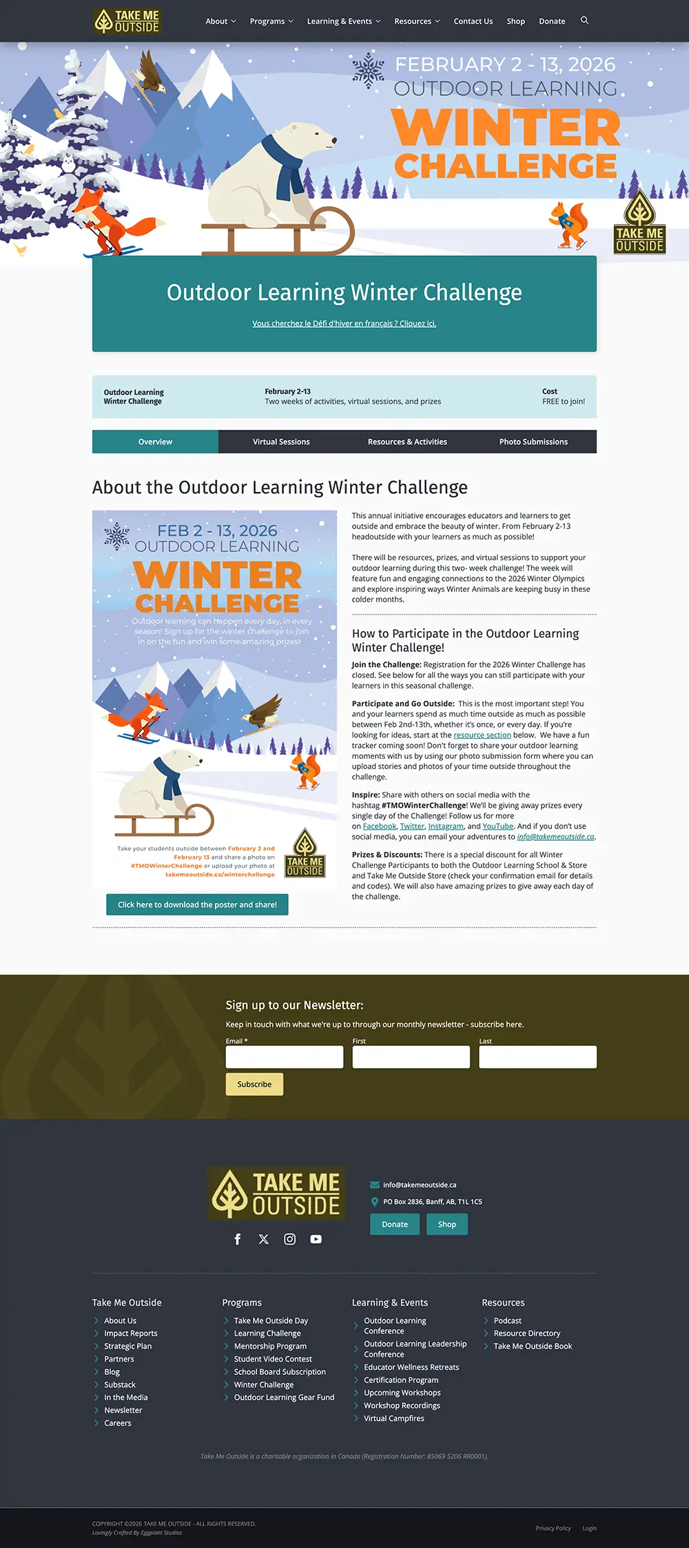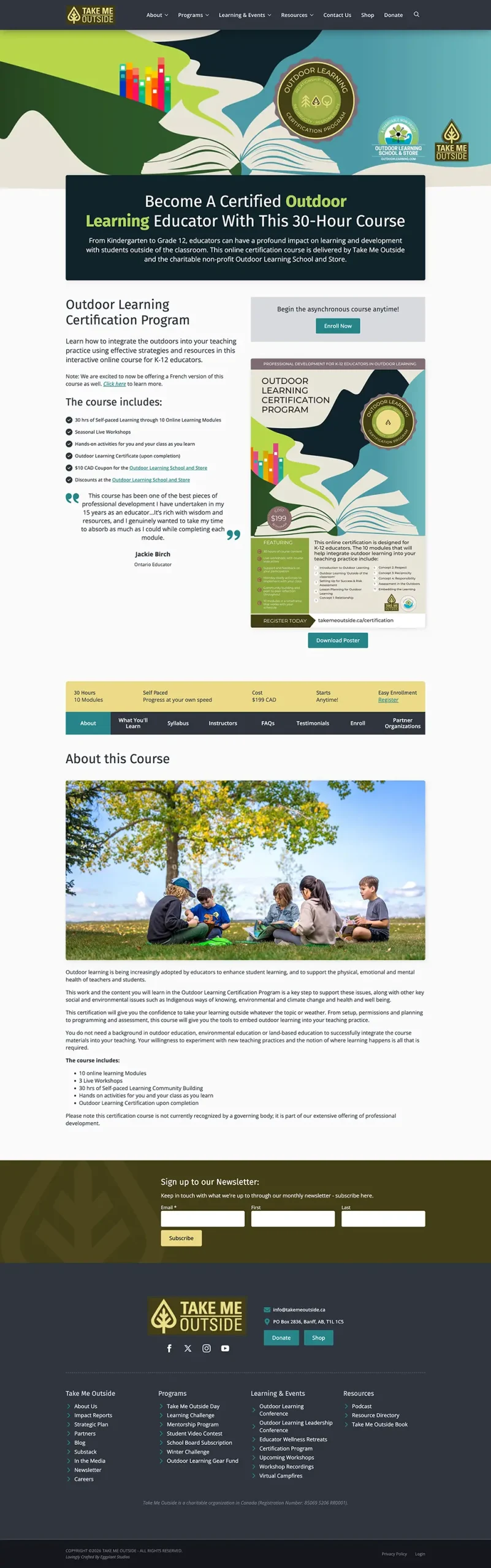 Take Me Outside has a plethora of offerings - from yearly recurring events, to certifications, to outdoor learning resources. All of these need to be beautifully integrated, easy to access, and concise: large website like this tend to sprawl and make navigation challenging.